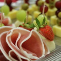 Zwei große Platten mit warmen Fleischvariationen vom Schwein, Rind und Huhn.